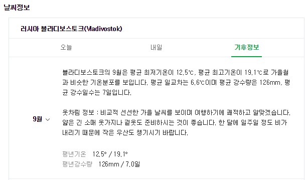 블라디 보스톡 9월 날씨는요.